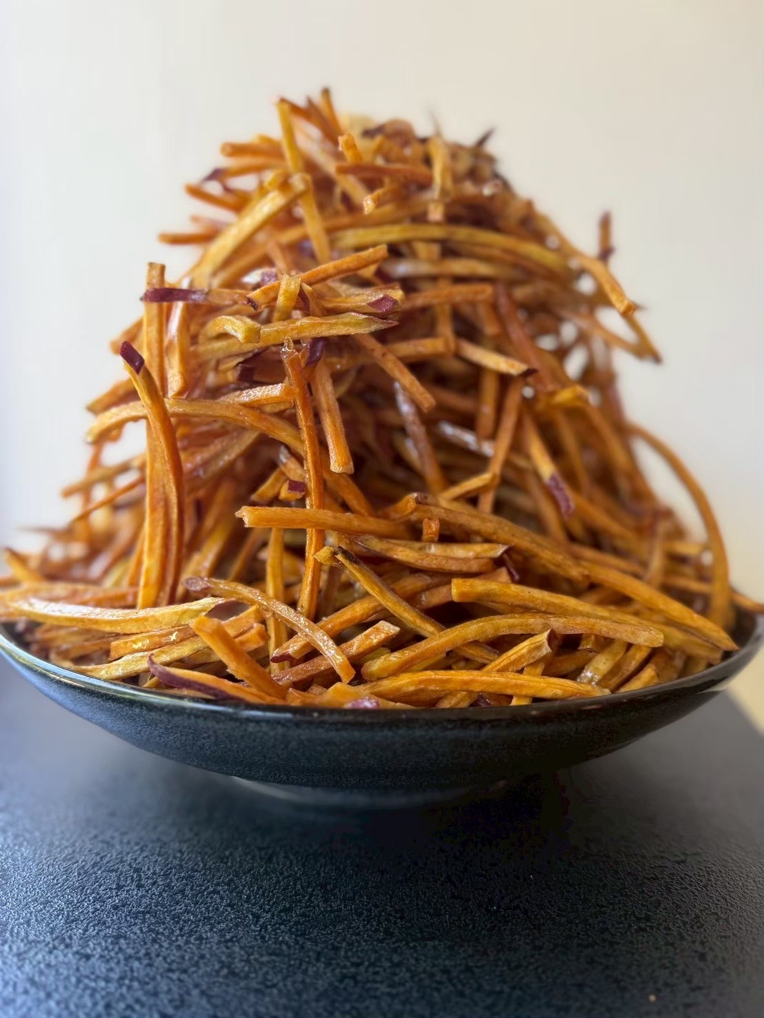 その日の芋の水分量や繊維の状態によって、カットの仕方や揚げ時間を微調整しています。